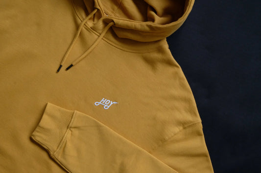 Sweat à capuche bio Hoy Explore - Moutarde délavée
