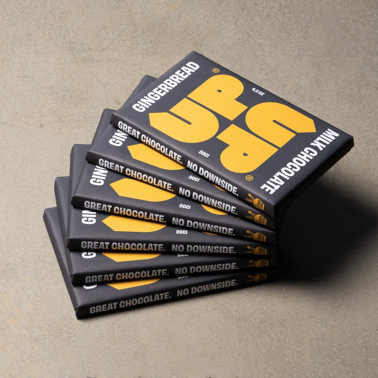 UP-UP Gingerbread est un chocolat au lait Single Estate à 35 % de cacao, élaboré à partir de fèves de cacao fines, de gingembre moulu et de cannelle, qui surprend nos sens à chaque bouchée. Chaleureuses, les notes boisées et épicées du gingembre et de la cannelle créent un équilibre parfait avec l'onctuosité et les arômes du cacao, pour un plaisir absolu.